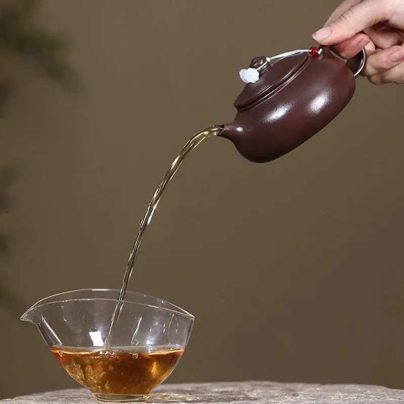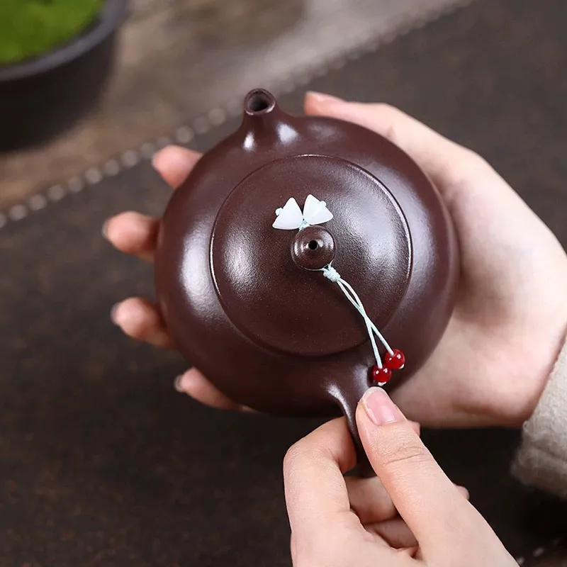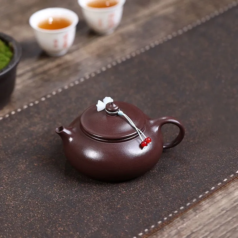 This Yixing purple clay teapot is entirely handcrafted from authentic raw ore purple clay sourced directly from Yixing. It has a capacity of 190 milliliters, making it ideal for daily tea brewing for one to two people. The distinctive dual porous structure native to Yixing purple clay teapots absorbs undesirable aftertastes and impurities from the tea infusion while locking in the full layers of tea aroma. Brewing oolong or pu-erh tea in this teapot yields a cleaner and more genuine flavor. With regular nourishment from tea infusions over an extended period, the teapot will develop a soft and glossy patina.