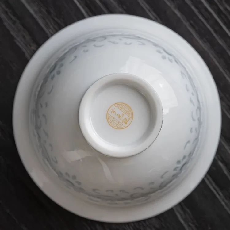 Jade Porcelain Exquisite Rice Pattern Gaiwan 180ml