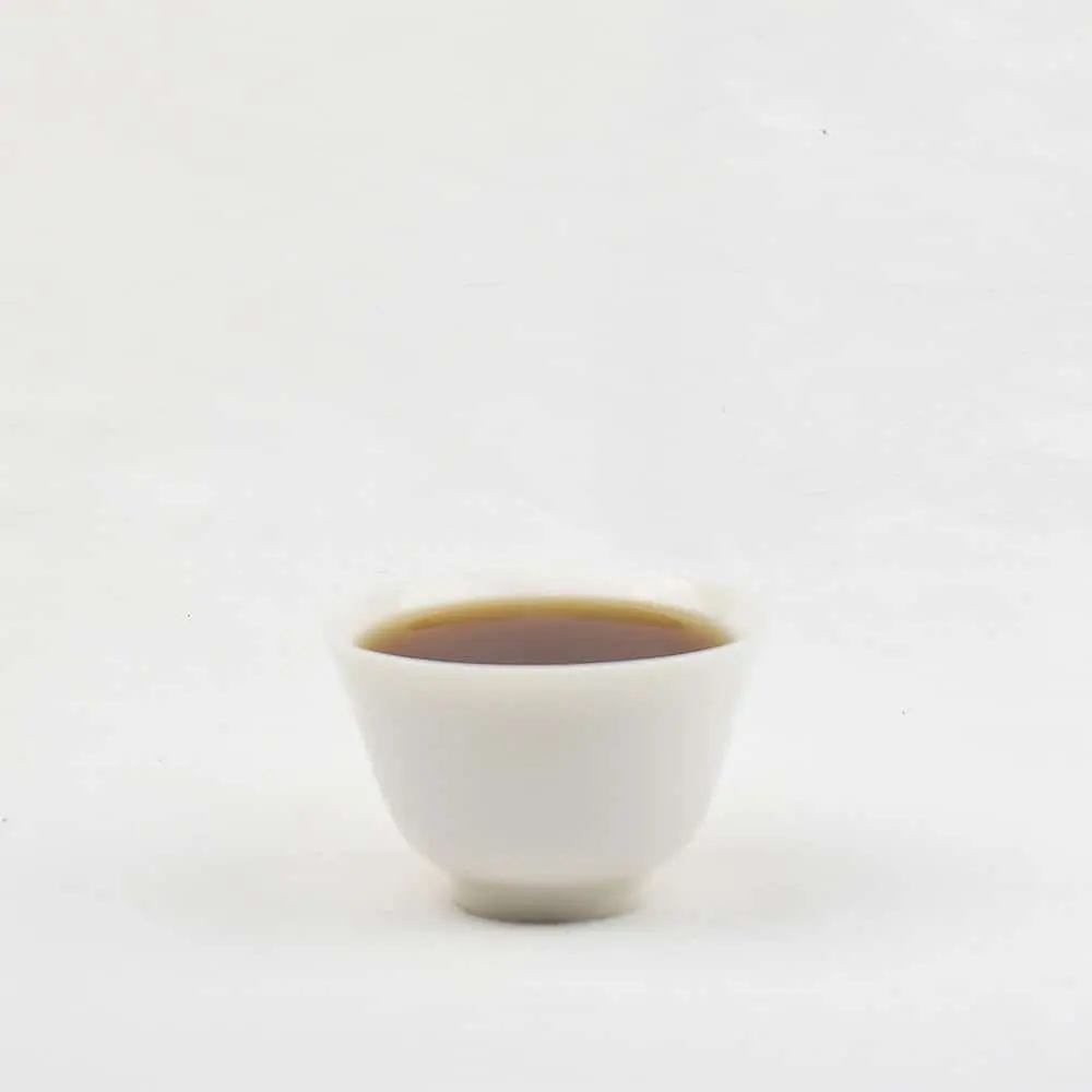 The dry leaves are finely curled and covered in golden downy hairs. After four years of aging, the aged aroma is rich and pronounced. When brewed, the tea liquor is clear, displaying a wine-red amber hue. The taste is mellow and smooth, offering both an earthy simplicity and a subtle lotus fragrance. It is a tea of distinction, perfect for personal enjoyment or collection.