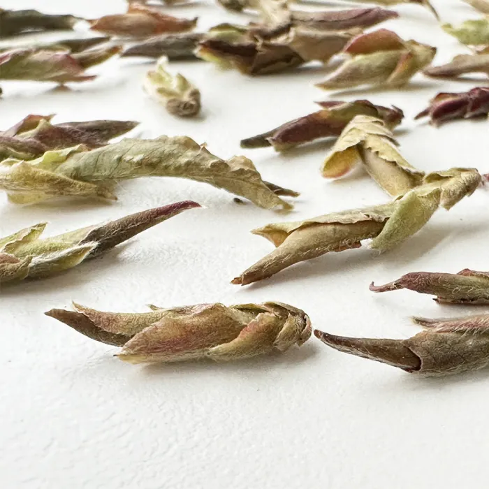 Wild purple bud tea from the Great Snow Mountains releases creamy, pink rose, and subtle citrus aromas upon brewing, offering a delightfully layered fragrance! Each bud is handpicked from the tender tips of thick-leafed mountain tea trees, preserving the authentic wild mountain flavor.